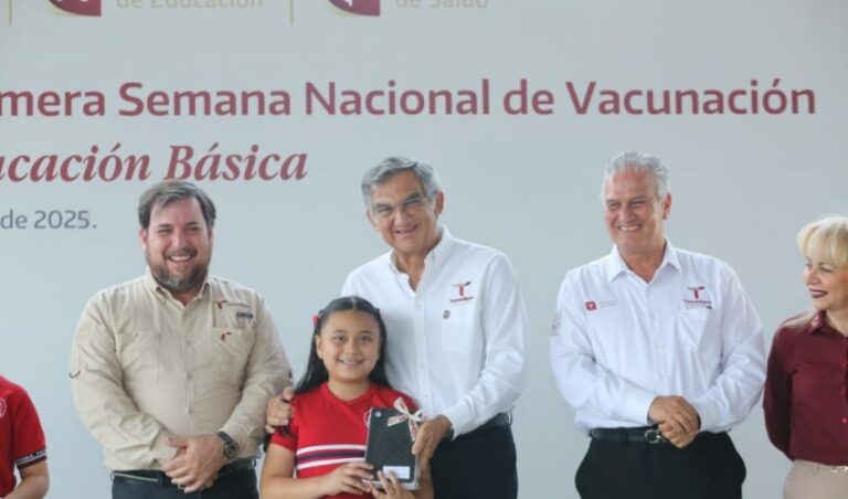 Como parte del inicio de la Semana Nacional de Vacunación en escuelas de educación básica, tres alumnos recibieron la aplicación del biológico, así como a una madre de familia embarazada.