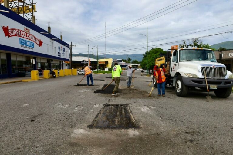 Para garantizar la circulación segura de vehículos, cuadrillas de trabajadores realizaron recorte de superficie, retiro de material dañado, aplicación de carpeta asfáltica y debida compactación en arterías colindantes con la avenida primaria José Sulaimán Chagnón.